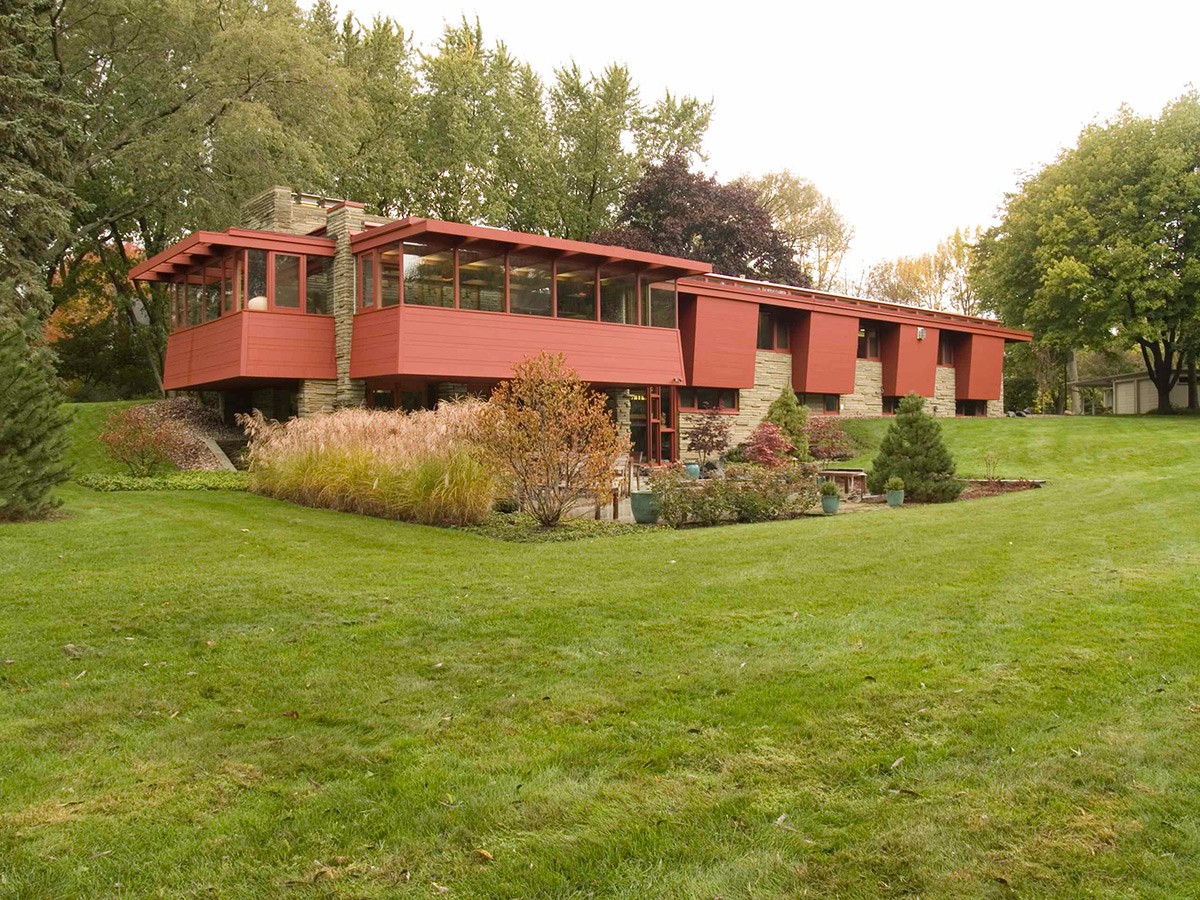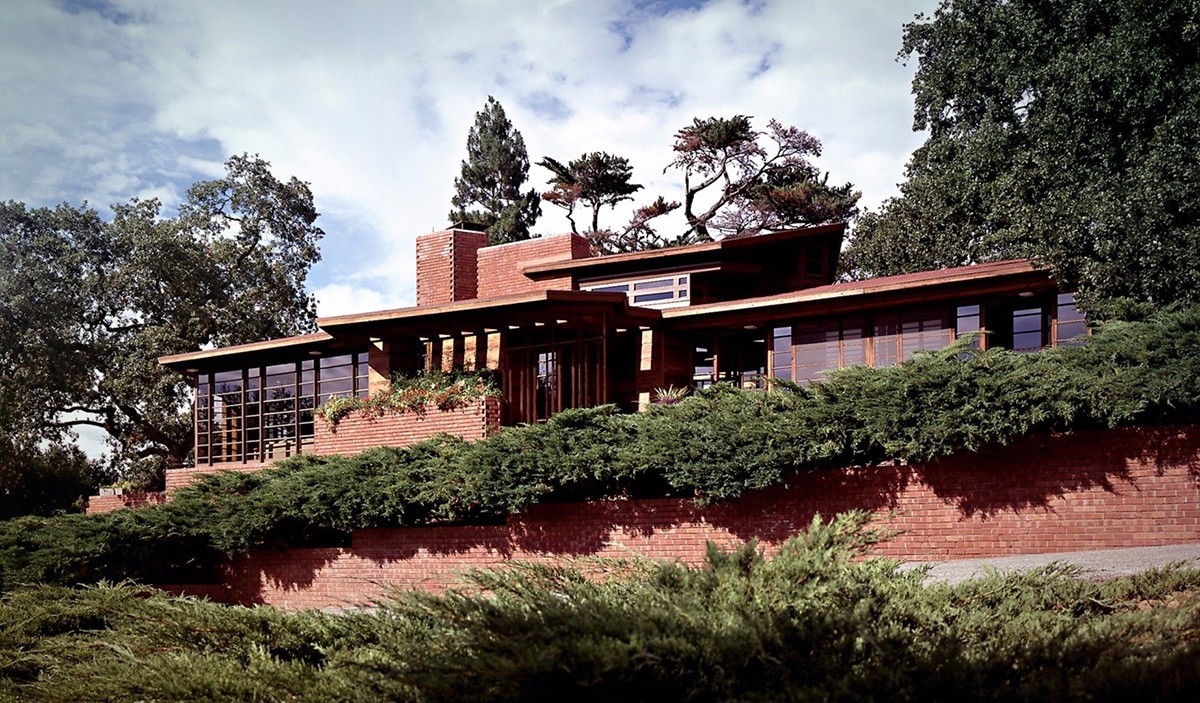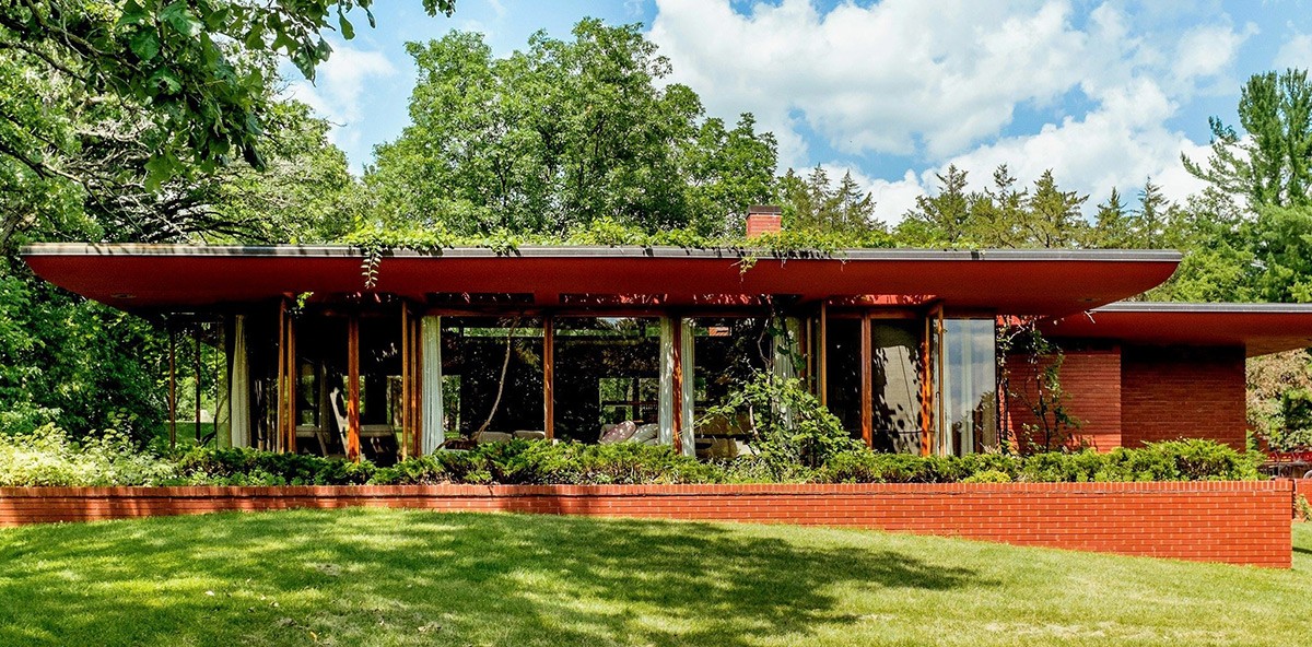 Cedar Rock exemplifies Frank Lloyd Wright's influential "Usonian" style, which is often seen in today's suburban Ranch houses. Designed for middle-class families, its grid-based layout accommodated the standardization of materials. What sets this home apart is Wright's handpicked furniture, carpets, draperies, and accessories that still adorn the interior today.