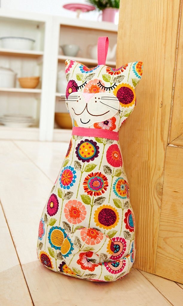 Here's another kitty-shaped doorstop, this time with a crafty aesthetic. The bright and colorful flowers are sure to bring springtime cheer into your home no matter the season.