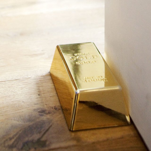 Smart investments are crucial, and you know what they say about gold. This shiny gold-colored bar would make a great paperweight or gag gift in addition to serving as a perfectly workable doorstop.