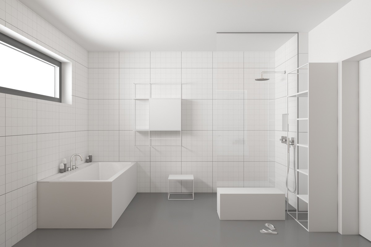 Sharpen up. Create a high end minimalist bathroom by selecting crisp linear pieces.