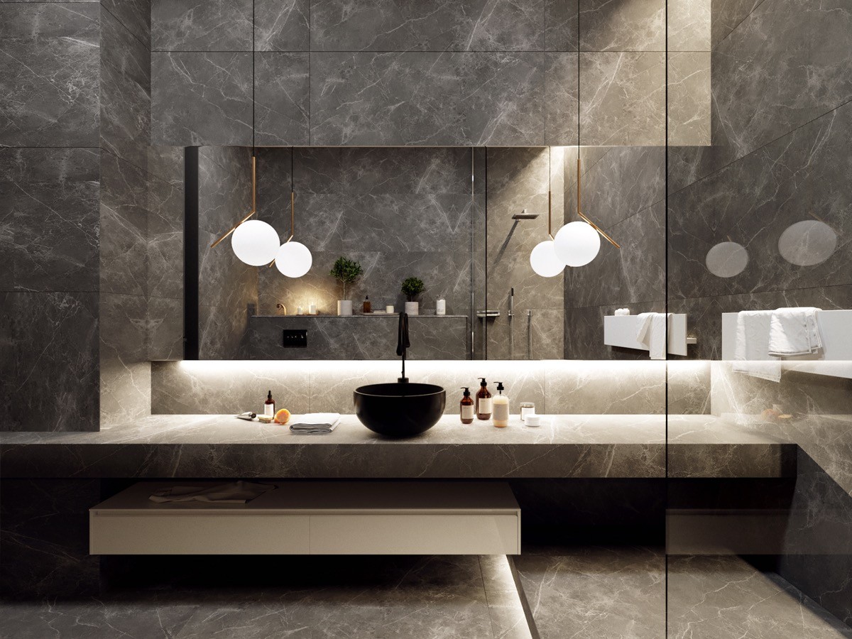 Marble finishes look marvellous. Marble decor has spanned the ages, and marble wall tiles, flooring, bathtubs and vanities will always have a place in bathroom design. Light up the look of this elegantly veined material with beautiful IC Lights S Pendant like the IC Lights S Pendant. A cheaper replica of this is available here.