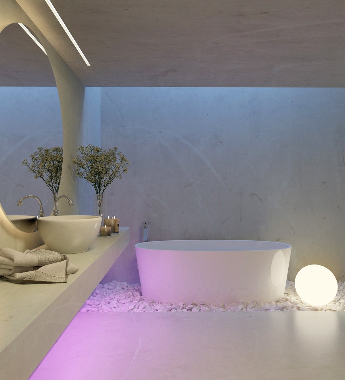 Light up your love of concrete. Concrete bathrooms are a cool trend, but do add in some warming lighting to keep the look inviting.