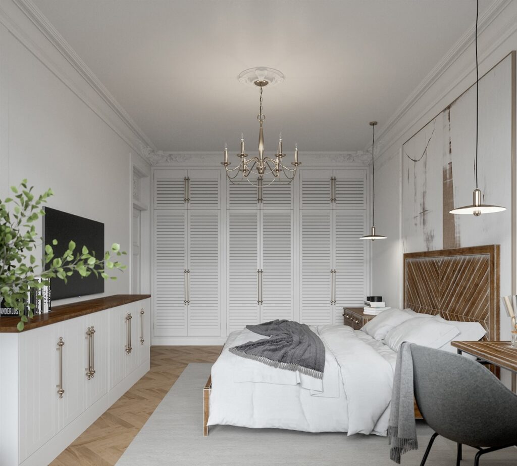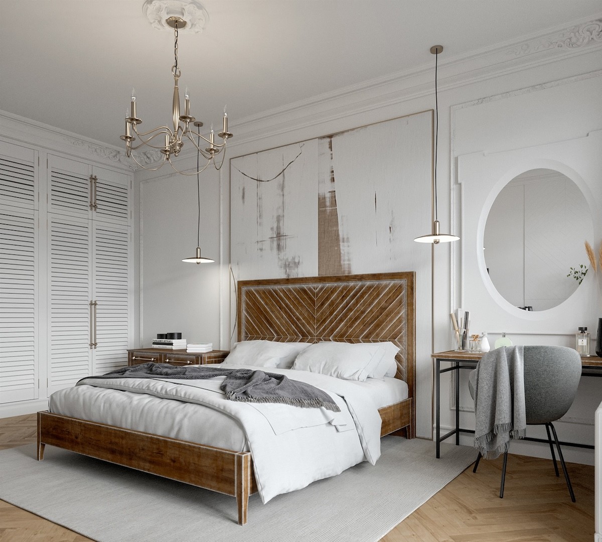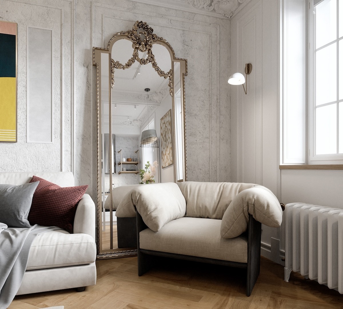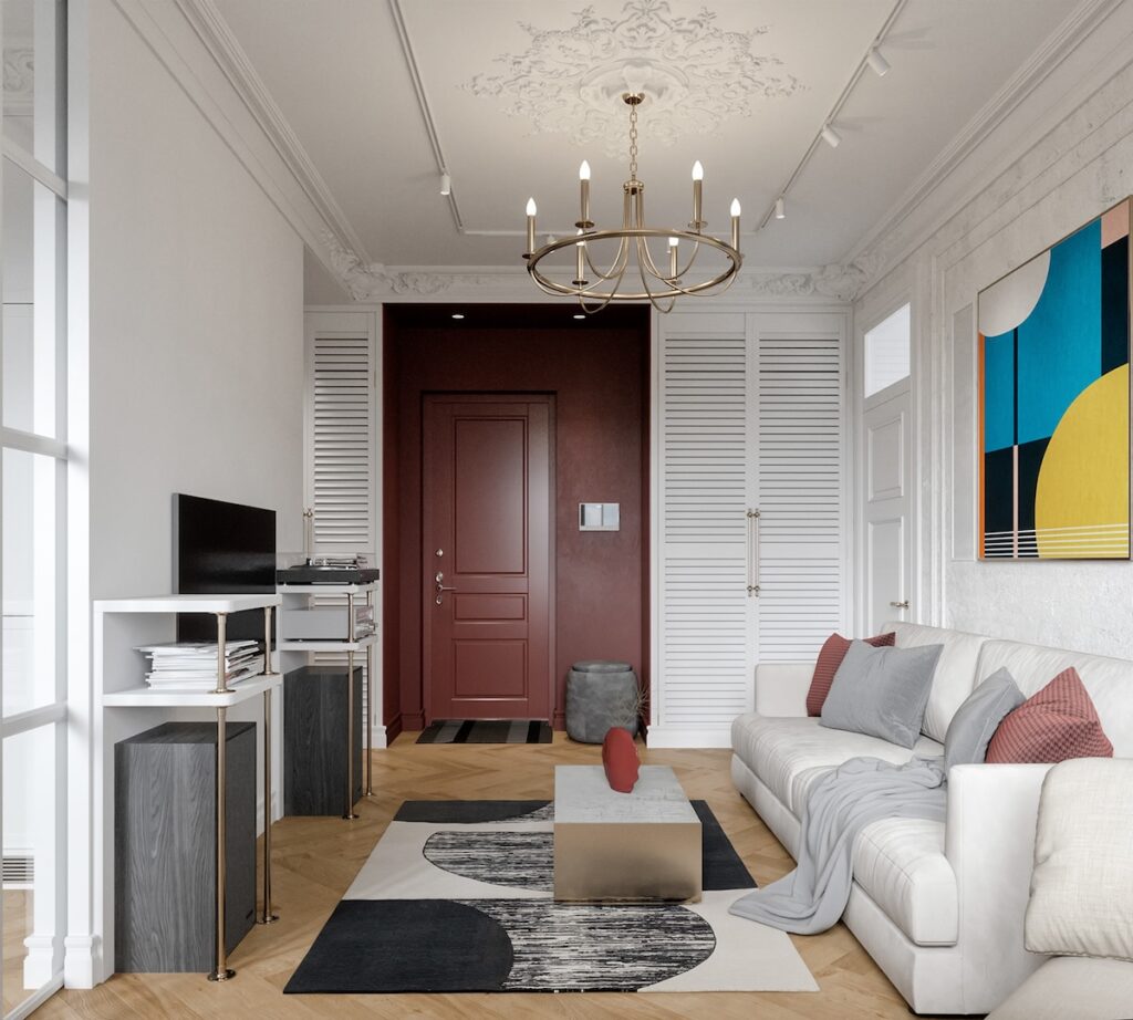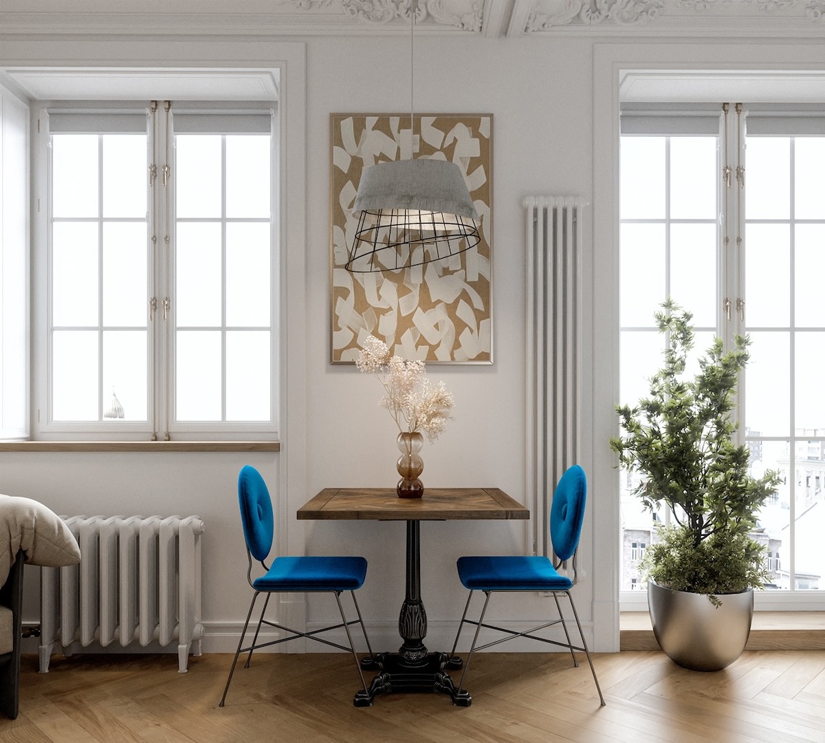 This loft apartment, a project by Maxim Shpinkov, captures the modern classic design in a small loft apartment. The project shows us how space may be a constraint in interior design—but it can be easily overcome with the proper design techniques! From wooden flooring to classic white walls, we see plenty of design secrets coming together to bring this space to life.